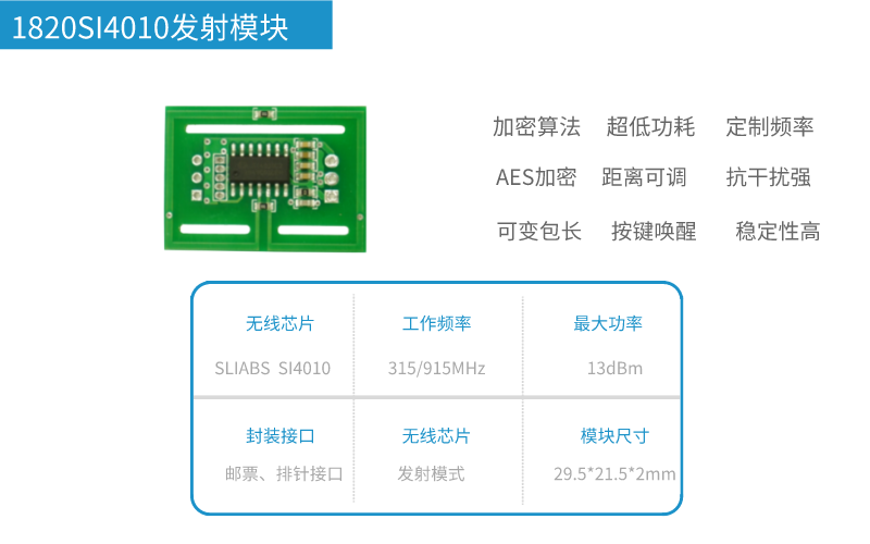 采用SKUABS的SI4010工業(yè)級(jí)無(wú)線芯片,出長(zhǎng)編碼,,42億地址碼,接收穩(wěn)定安全,抗干擾,防破解,AES加密,無(wú)線FSK可定制協(xié)議,功能,外形,距離更可達(dá)到200米以上,此模塊可加裝在充電槍內(nèi)