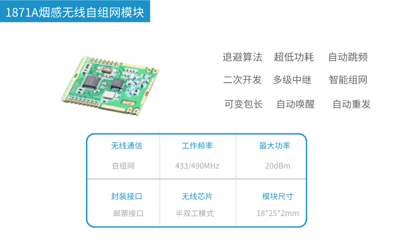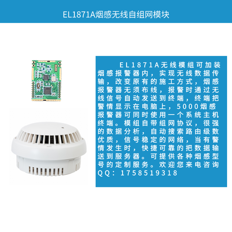 EL1871A獨(dú)立煙感無線自組網(wǎng)路由低功耗模塊模組